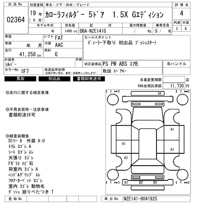 TOYOTA COROLLA FIELDER - лот 2364
