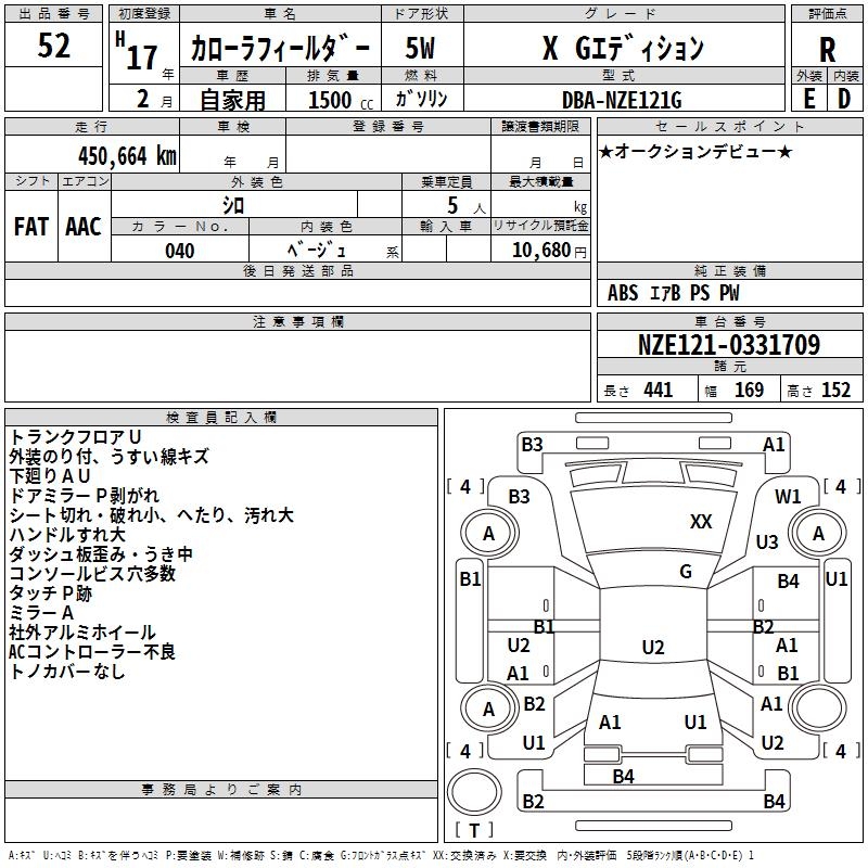 TOYOTA COROLLA FIELDER - лот 52