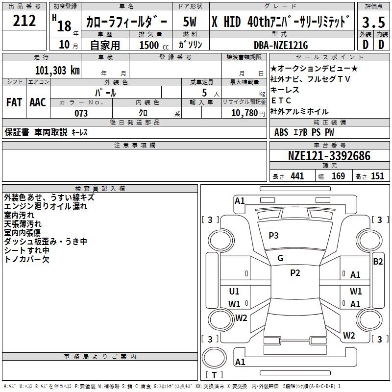 TOYOTA COROLLA FIELDER - лот 212