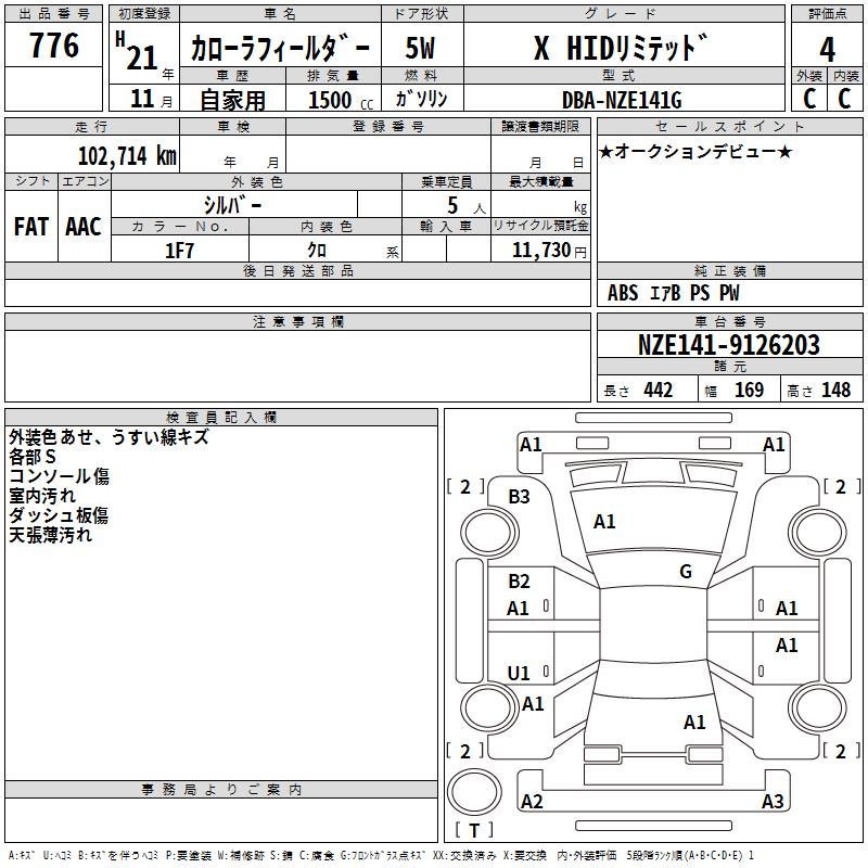 TOYOTA COROLLA FIELDER - лот 776