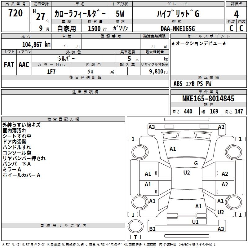 TOYOTA COROLLA FIELDER - лот 720