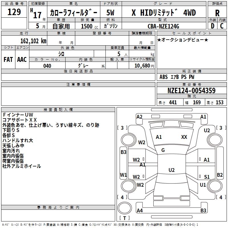TOYOTA COROLLA FIELDER - лот 129