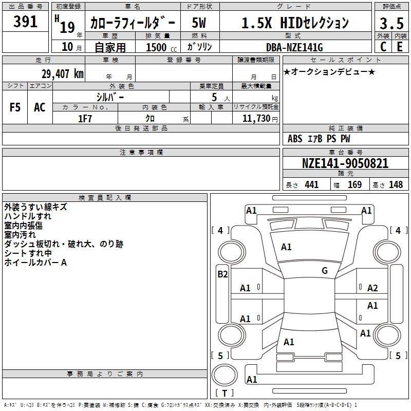 TOYOTA COROLLA FIELDER - лот 391