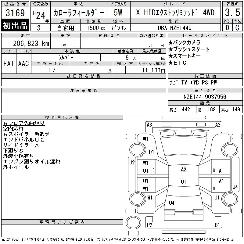 TOYOTA COROLLA FIELDER - лот 3169