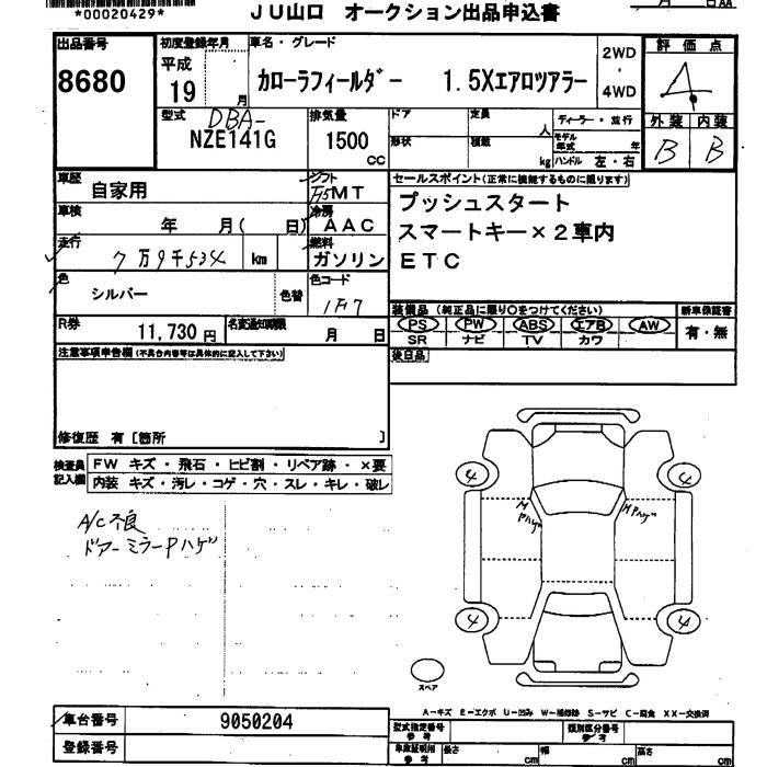 TOYOTA COROLLA FIELDER - лот 8680