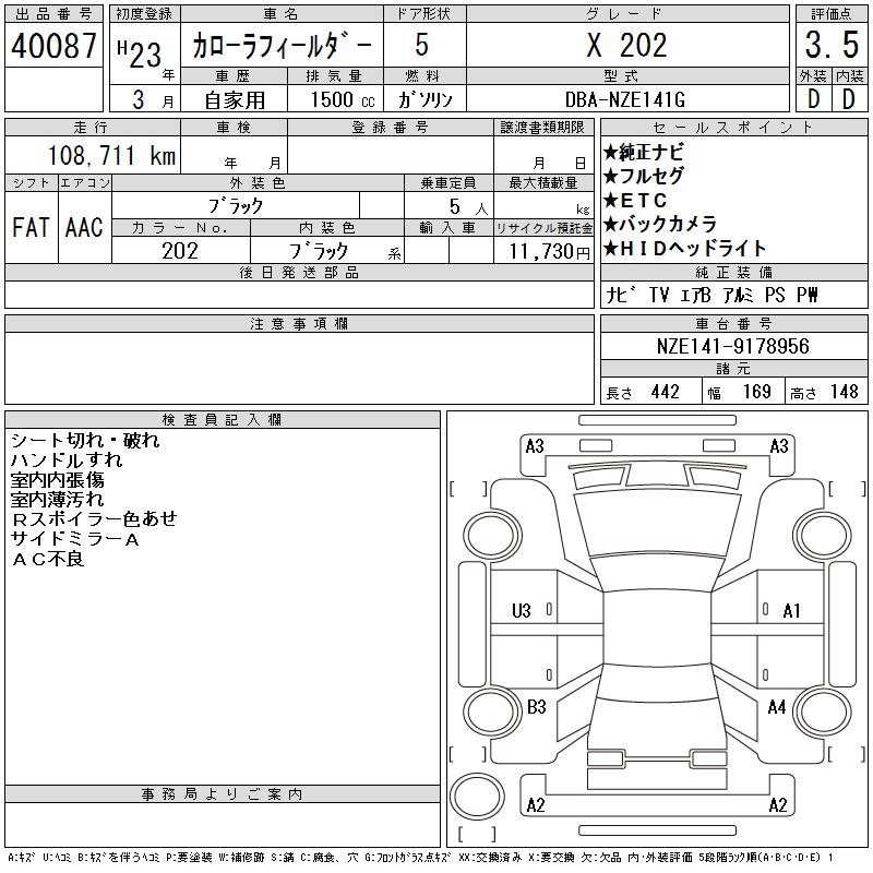 TOYOTA COROLLA FIELDER - лот 40087