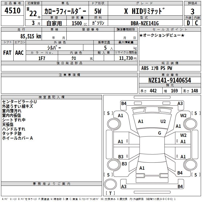 TOYOTA COROLLA FIELDER - лот 4510