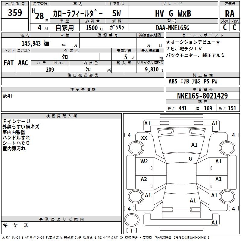 TOYOTA COROLLA FIELDER - лот 359