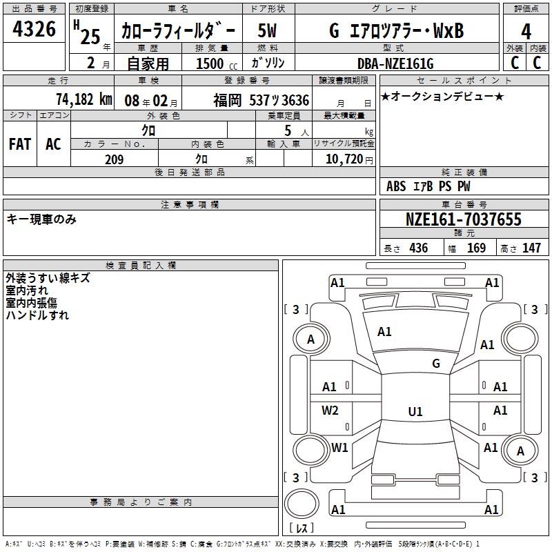 TOYOTA COROLLA FIELDER - лот 4326