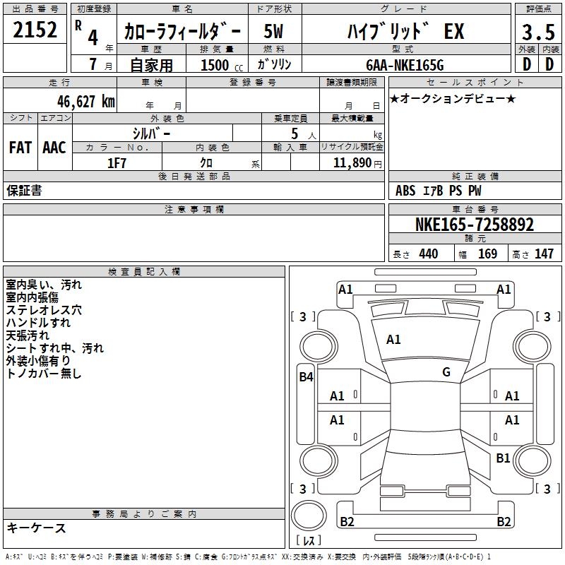 TOYOTA COROLLA FIELDER - лот 2152
