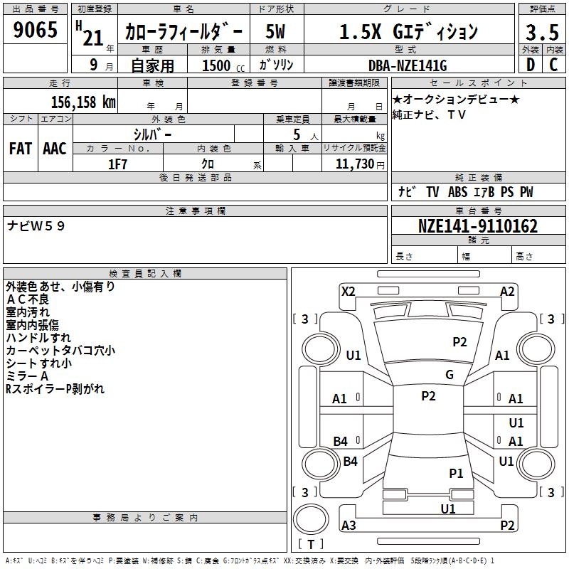 TOYOTA COROLLA FIELDER - лот 9065