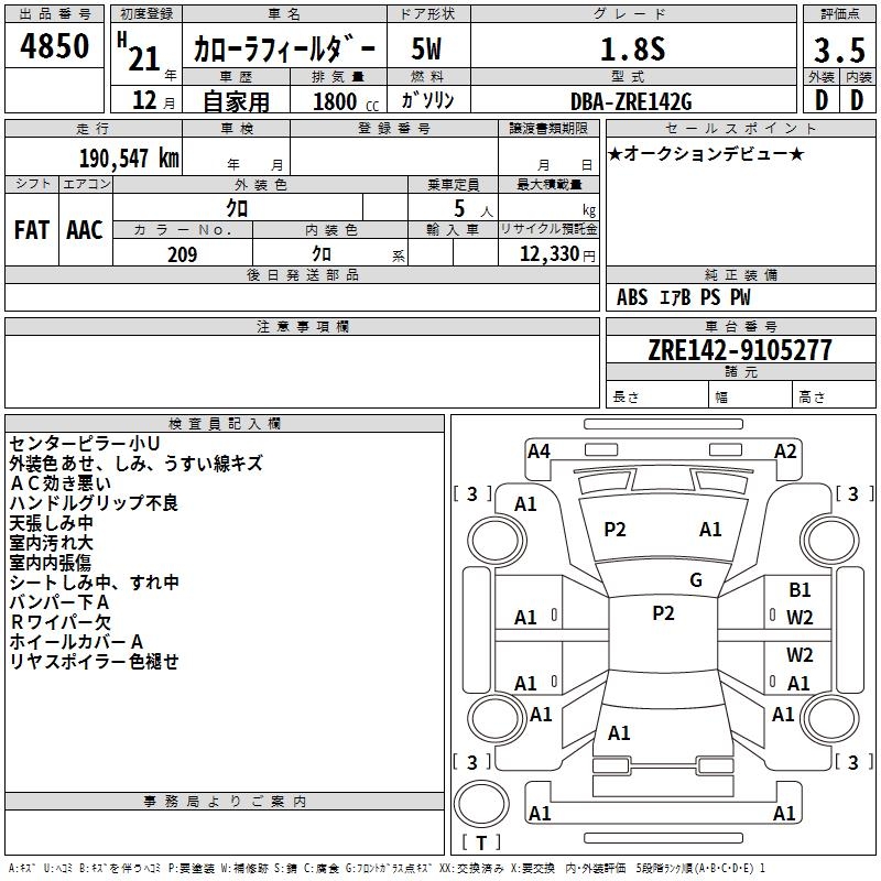TOYOTA COROLLA FIELDER - лот 4850
