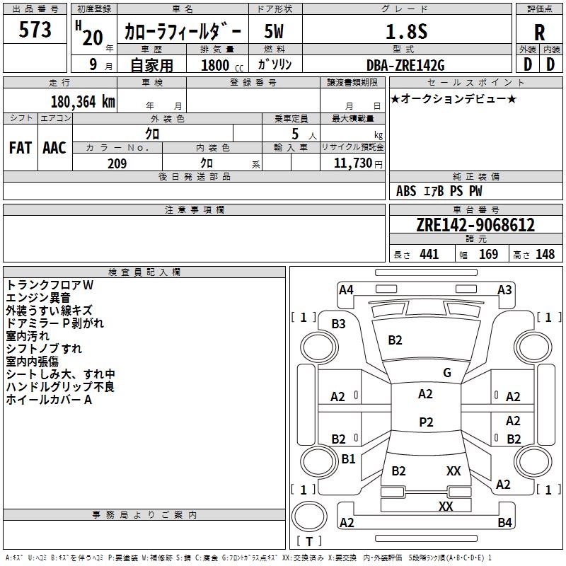 TOYOTA COROLLA FIELDER - лот 573