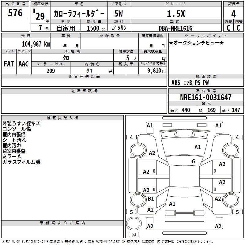 TOYOTA COROLLA FIELDER - лот 576