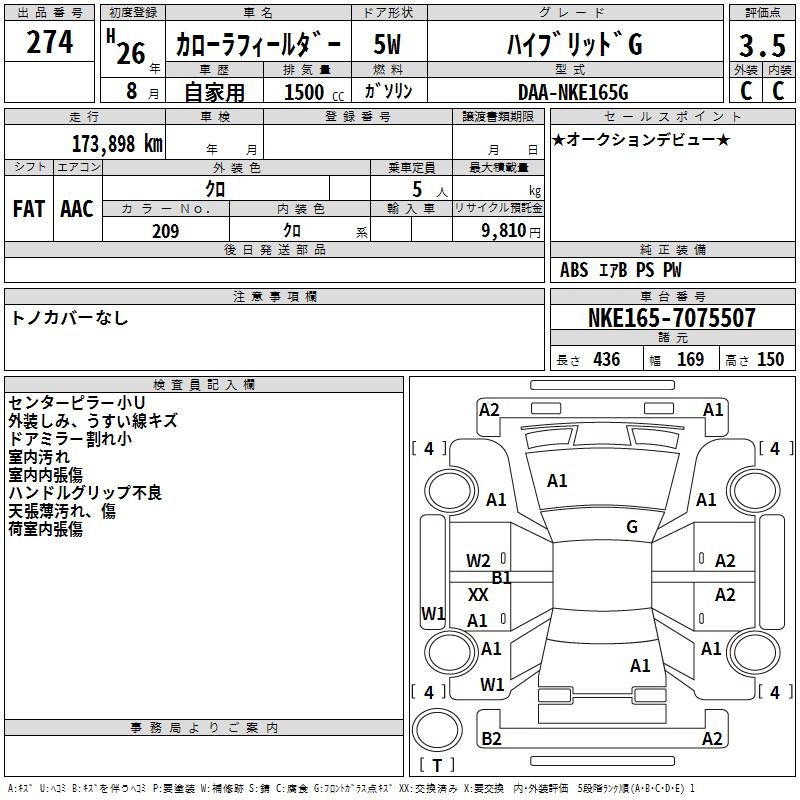 TOYOTA COROLLA FIELDER - лот 274