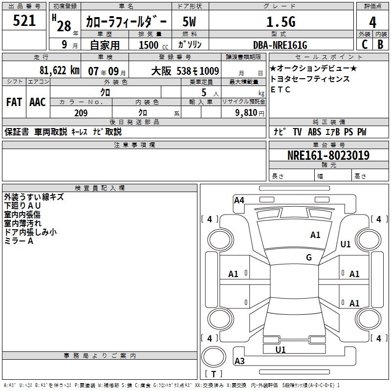 TOYOTA COROLLA FIELDER - лот 521