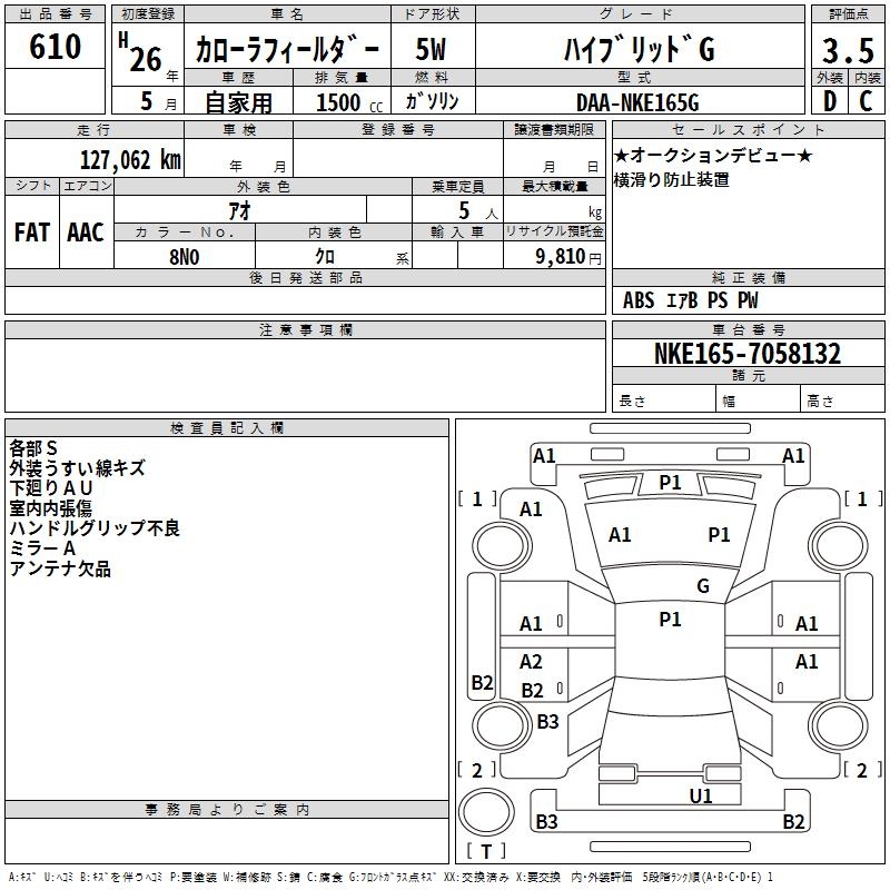 TOYOTA COROLLA FIELDER - лот 610