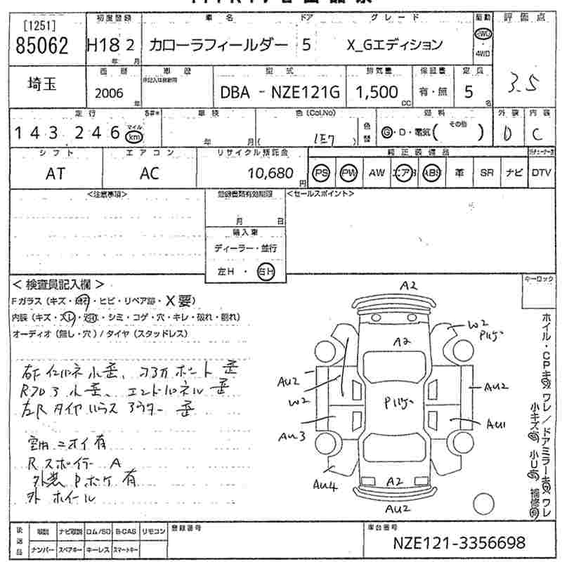 TOYOTA COROLLA FIELDER - лот 85062