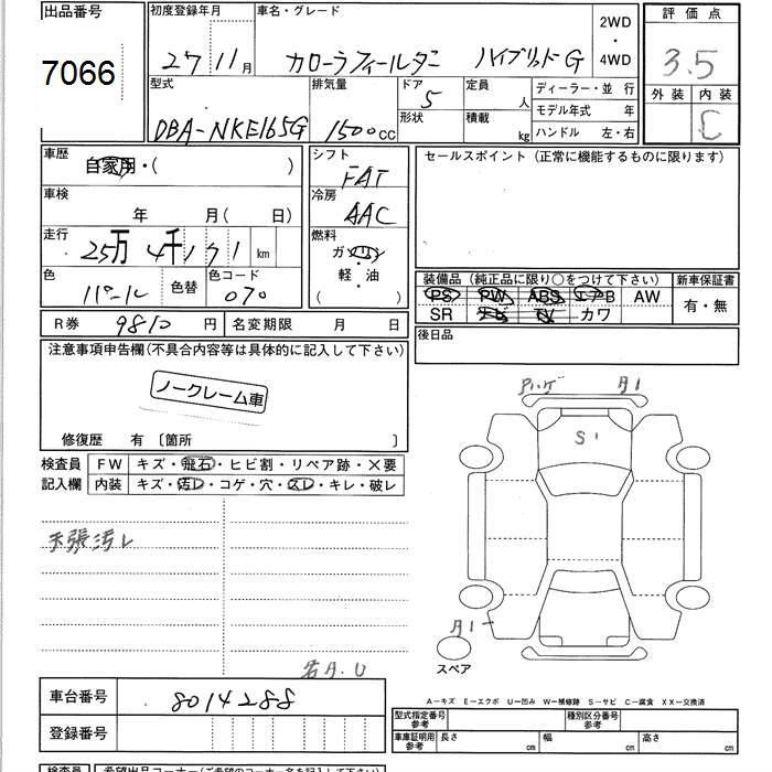 TOYOTA COROLLA FIELDER - лот 7066