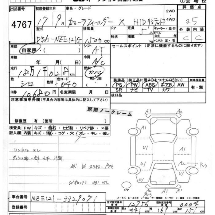 TOYOTA COROLLA FIELDER - лот 4767