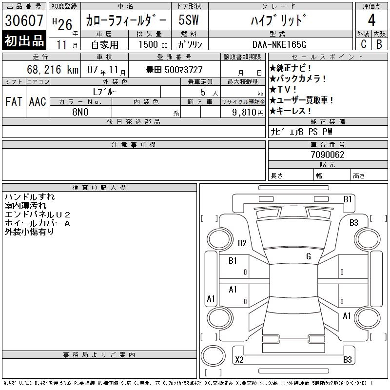 TOYOTA COROLLA FIELDER - лот 30607
