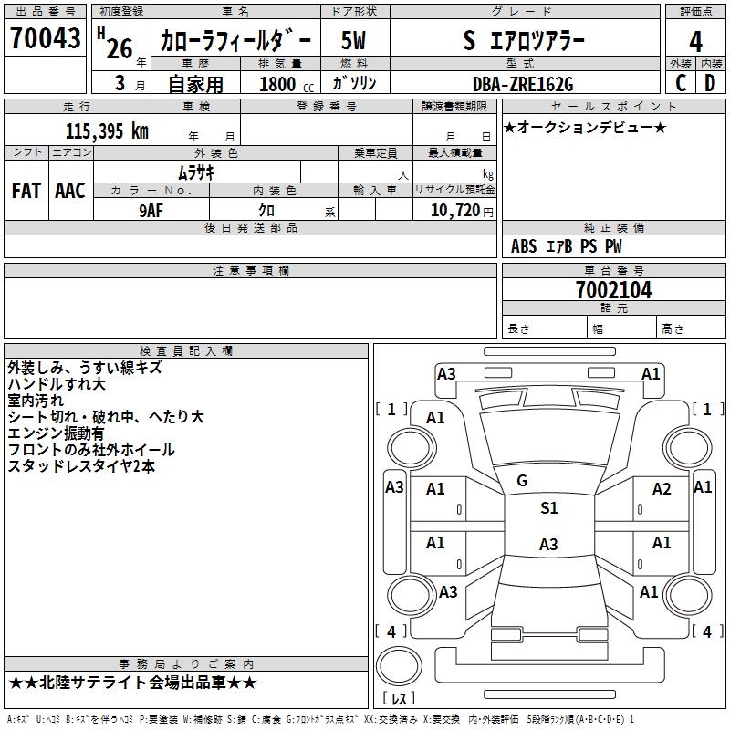 TOYOTA COROLLA FIELDER - лот 70043