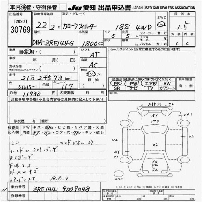 TOYOTA COROLLA FIELDER - лот 30769