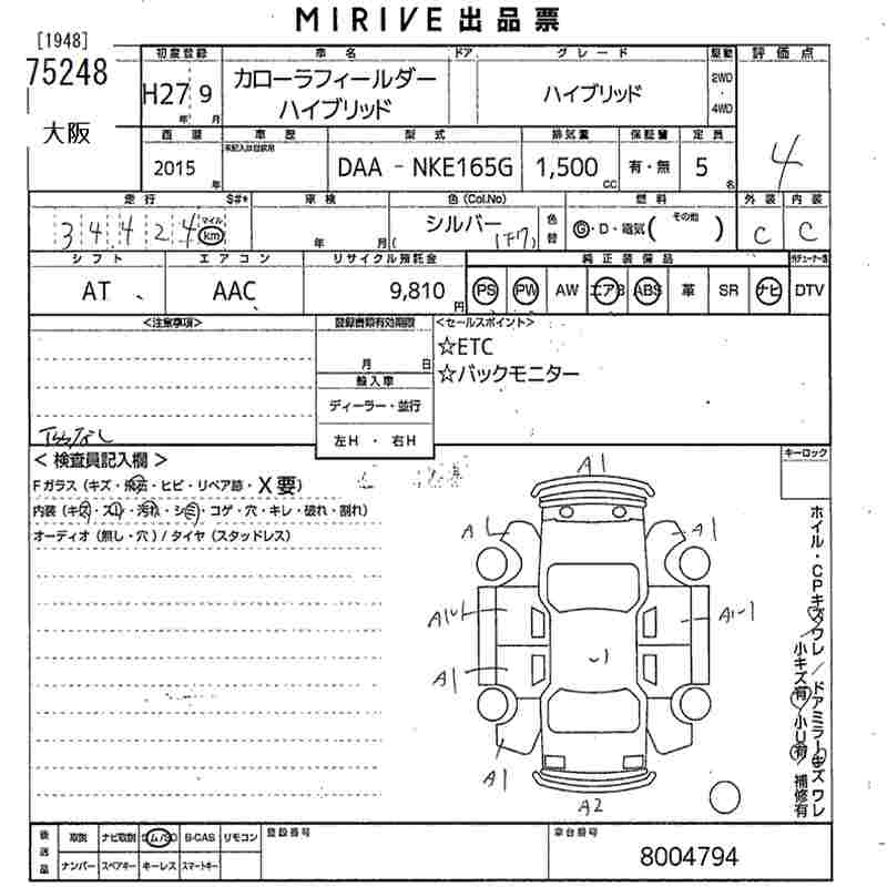 TOYOTA COROLLA FIELDER - лот 75248
