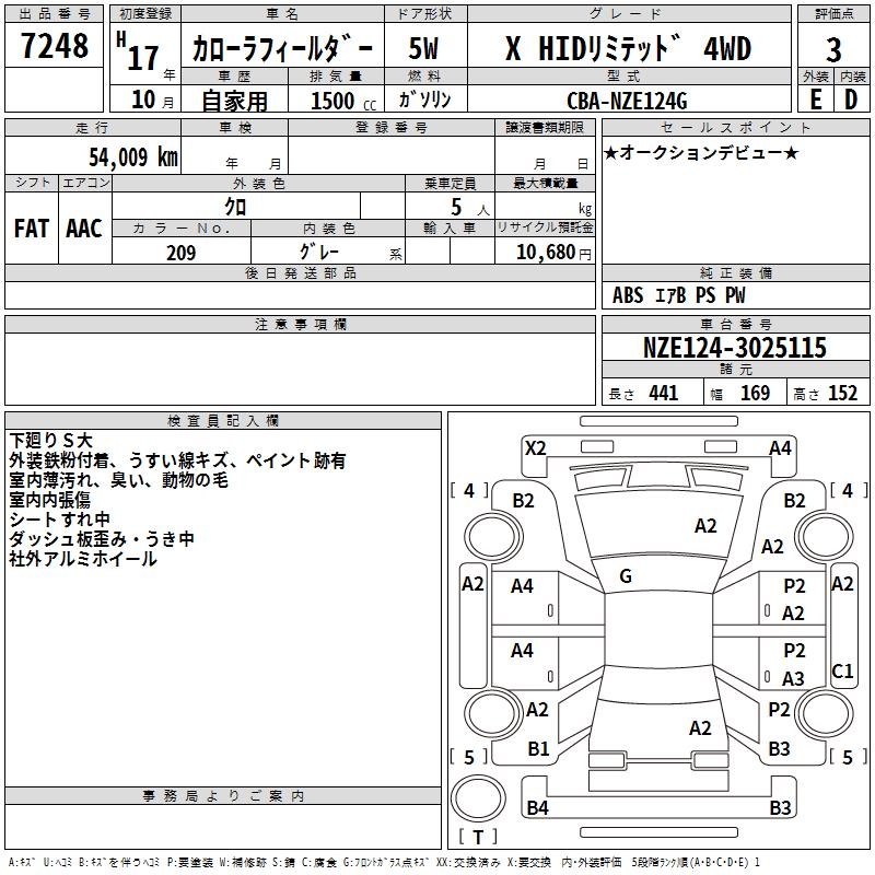 TOYOTA COROLLA FIELDER - лот 7248