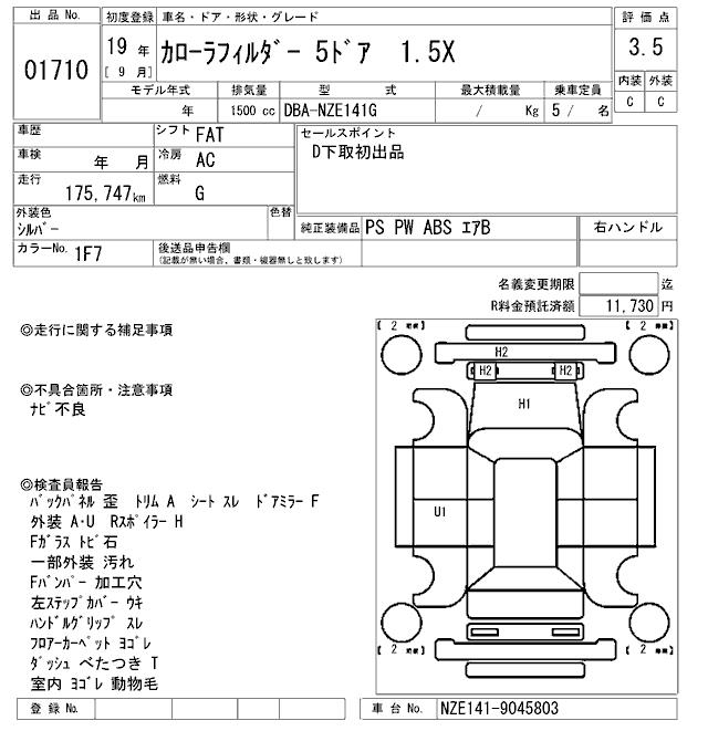 TOYOTA COROLLA FIELDER - лот 1710