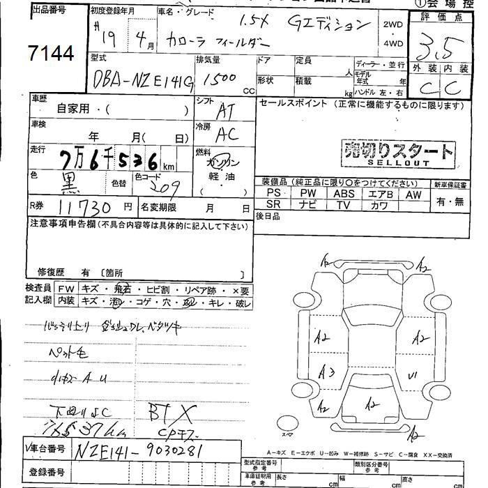 TOYOTA COROLLA FIELDER - лот 7144