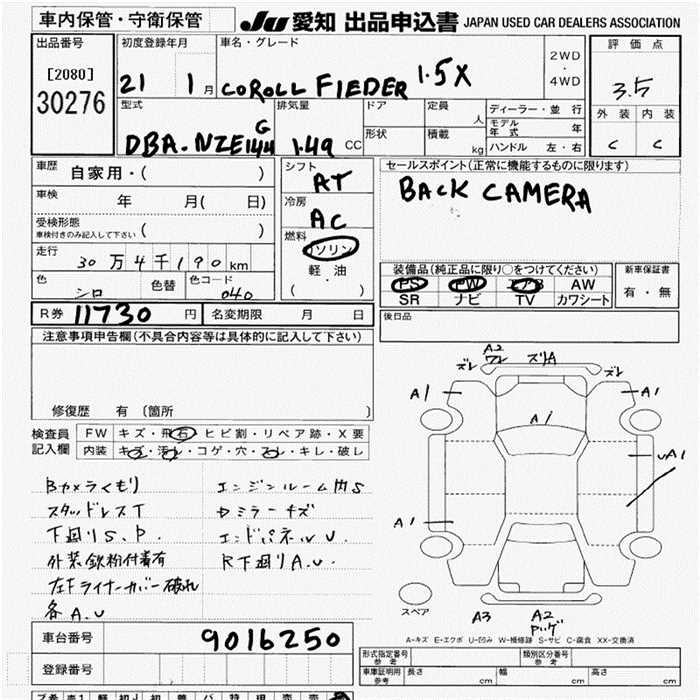 TOYOTA COROLLA FIELDER - лот 30276