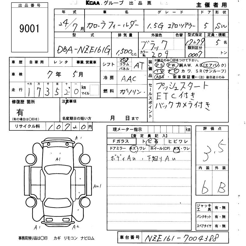 TOYOTA COROLLA FIELDER - лот 9001