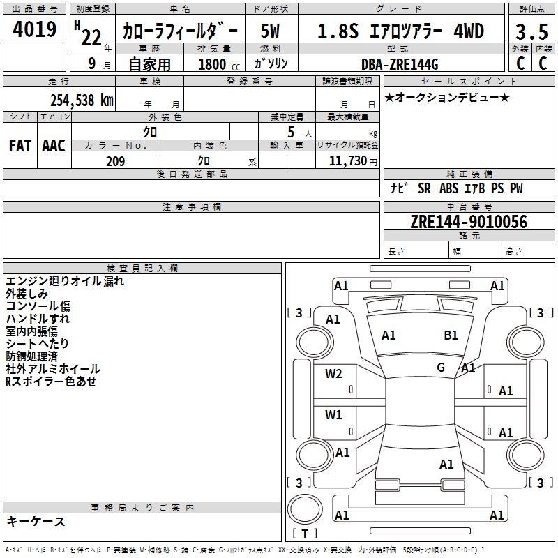 TOYOTA COROLLA FIELDER - лот 4019