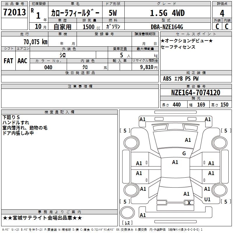 TOYOTA COROLLA FIELDER - лот 72013