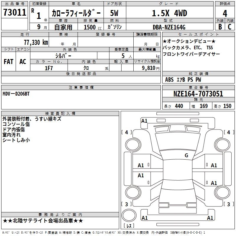 TOYOTA COROLLA FIELDER - лот 73011
