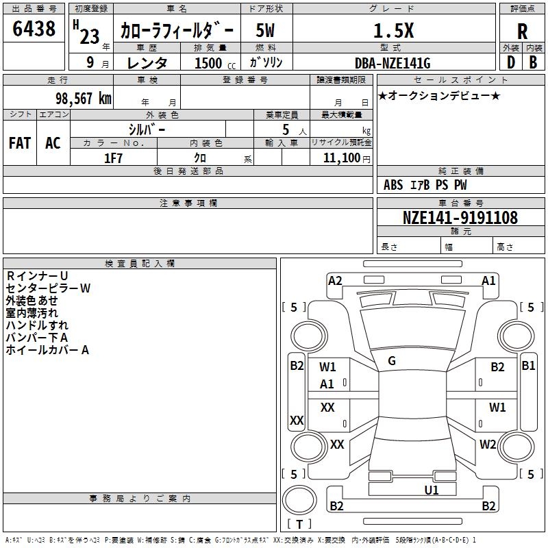 TOYOTA COROLLA FIELDER - лот 6438