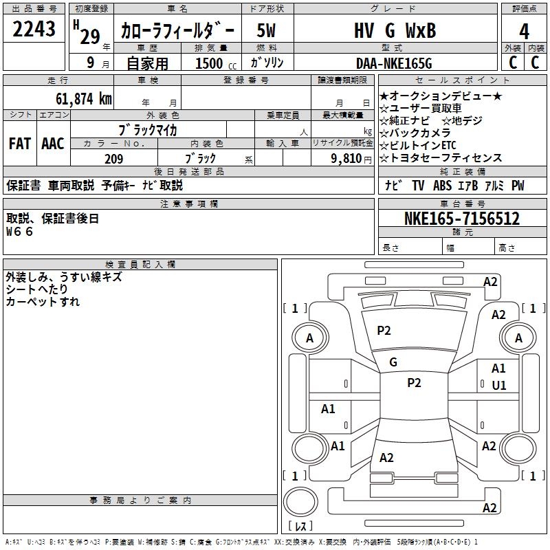 TOYOTA COROLLA FIELDER - лот 2243