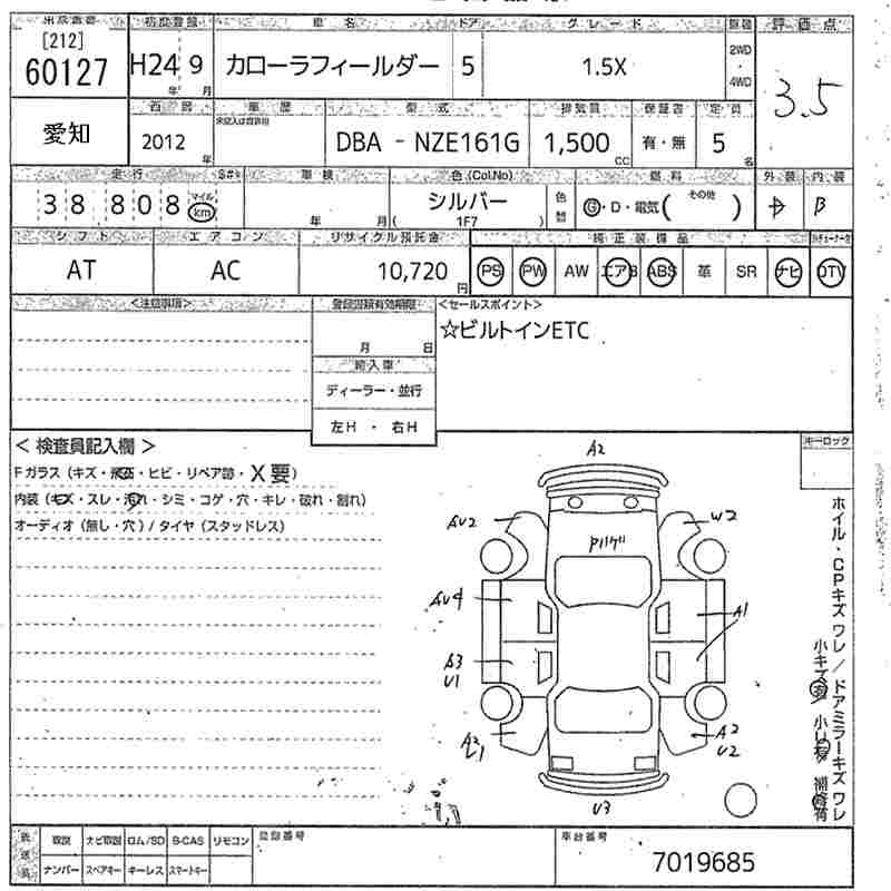 TOYOTA COROLLA FIELDER - лот 60127