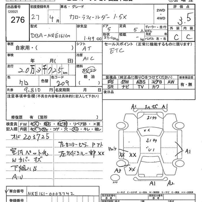 TOYOTA COROLLA FIELDER - лот 276