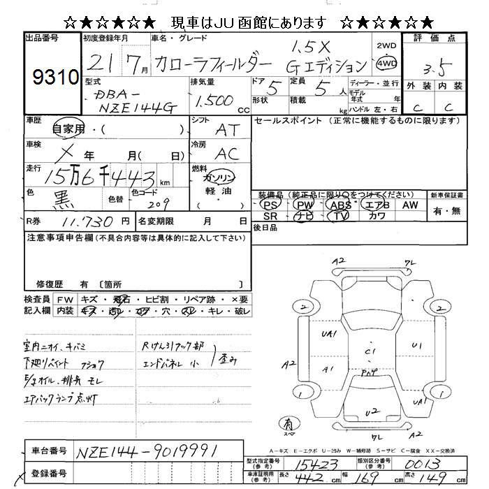 TOYOTA COROLLA FIELDER - лот 9310