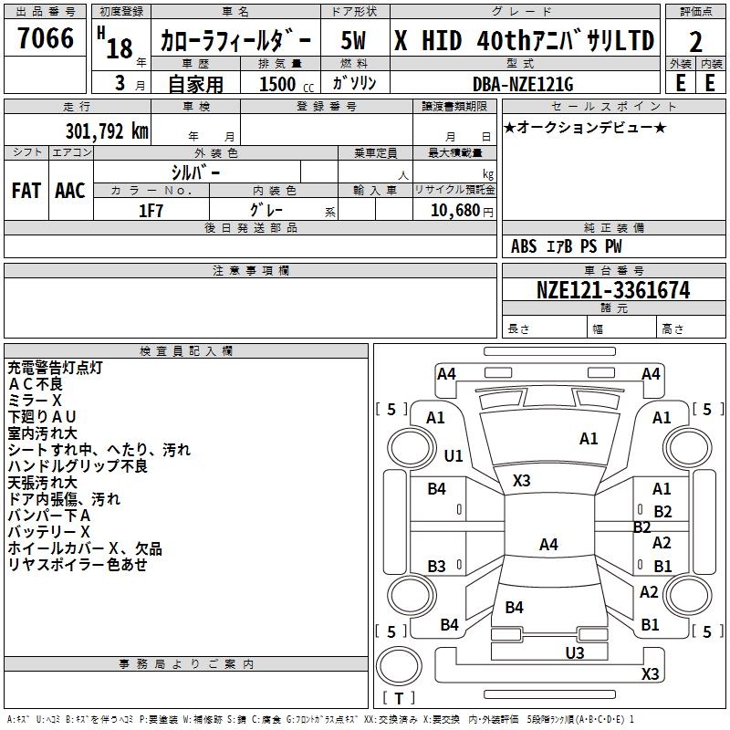 TOYOTA COROLLA FIELDER - лот 7066