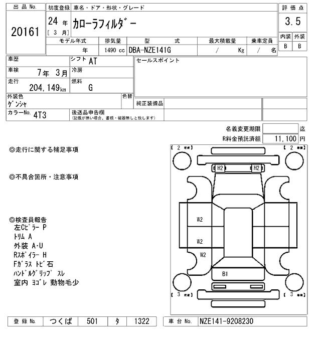TOYOTA COROLLA FIELDER - лот 20161