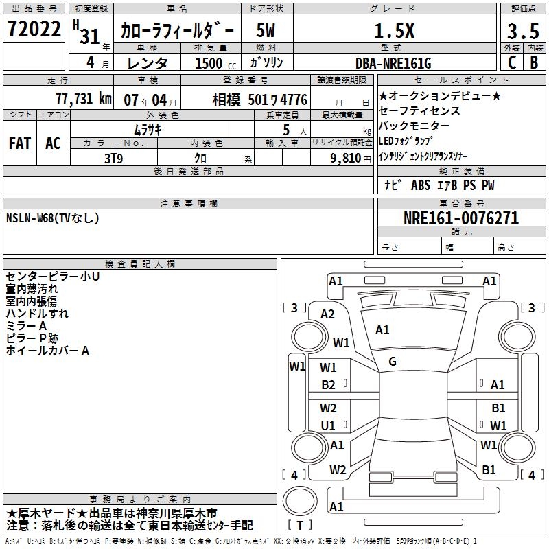 TOYOTA COROLLA FIELDER - лот 72022