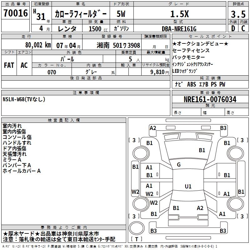 TOYOTA COROLLA FIELDER - лот 70016