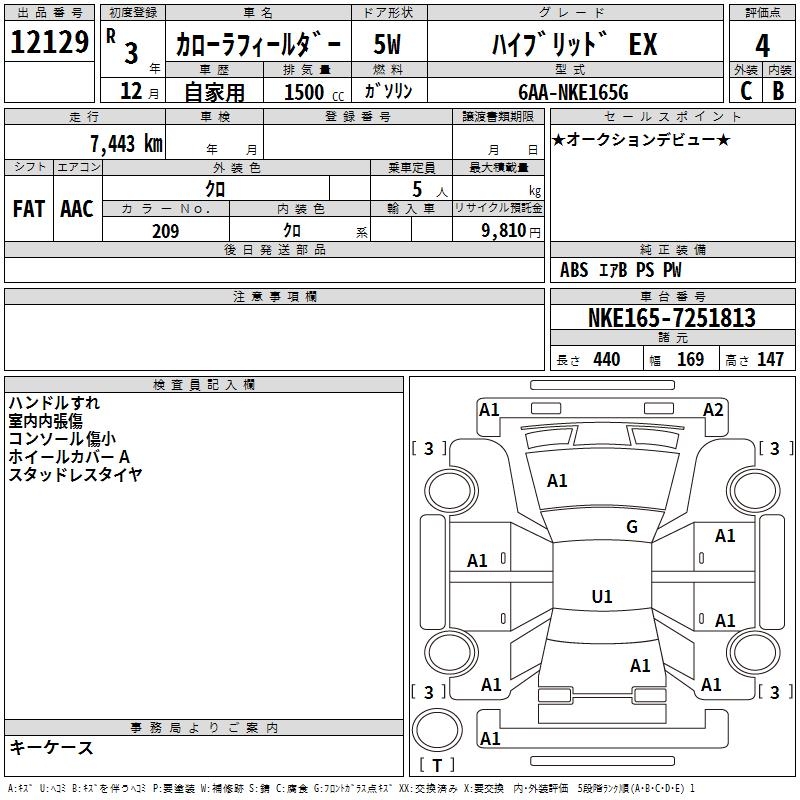 TOYOTA COROLLA FIELDER - лот 12129