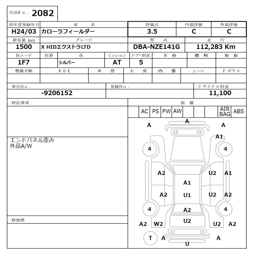 TOYOTA COROLLA FIELDER - лот 2082