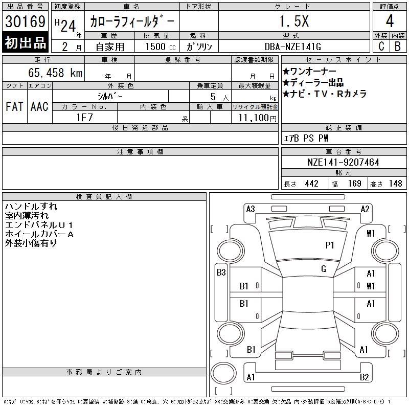 TOYOTA COROLLA FIELDER - лот 30169