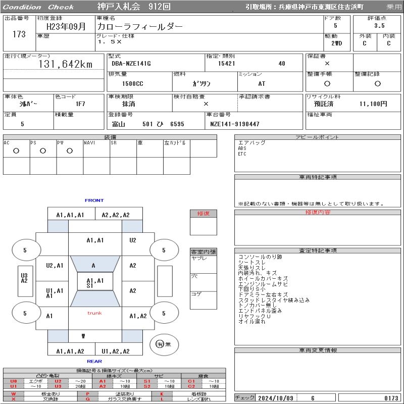 TOYOTA COROLLA FIELDER - лот 173