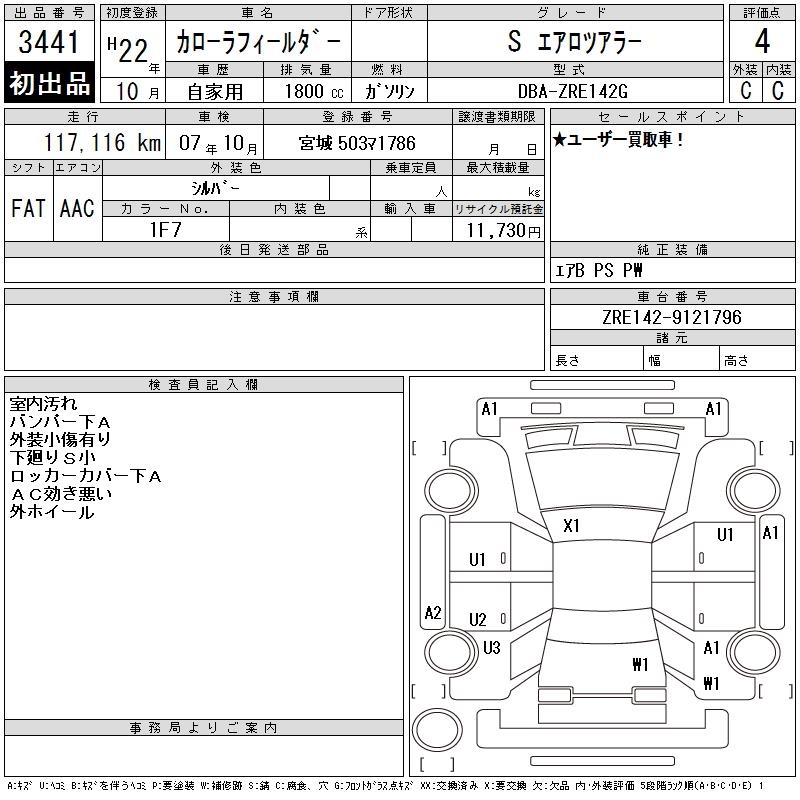 TOYOTA COROLLA FIELDER - лот 3441